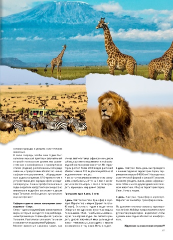 ные радиостанциями, GPS-треккингом и У вас есть уникальная возможность совер- экзотической фауной и флорой Танзании.